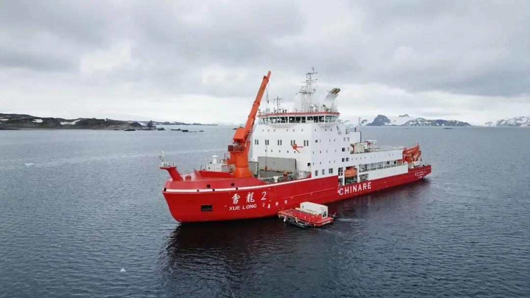 近日,执行中国第42次南极考察任务的“雪龙2”号抵达南极长城站,开始卸货作业。