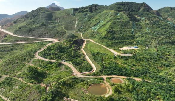 韶关市新丰县历史遗留废弃矿山生态修复项目(雪峒矿区)修复后航拍图。