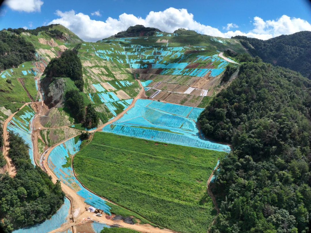 韶关市大宝山新山片区历史遗留矿山生态恢复治理项目修复后航拍图。